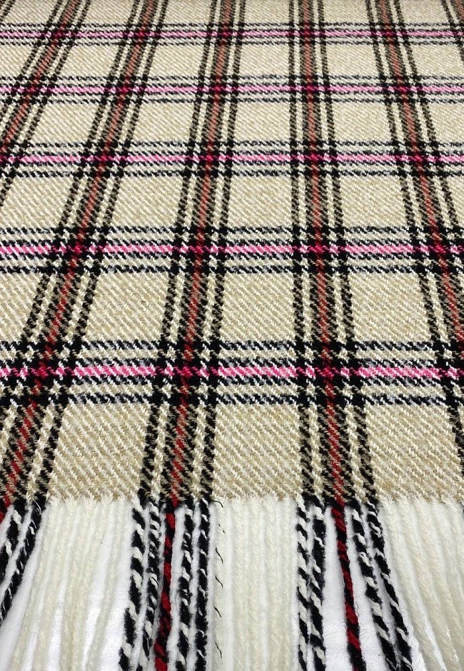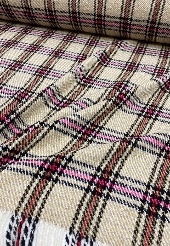 Пальтовая Шерсть Лана Твид квадро бахрома (Розовый, Бежевый, Черный)