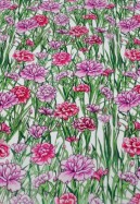 Шелк CDC принт гвоздики (Зеленый, Розовый, Белый)