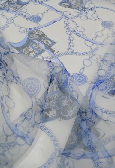 Шелк Органза принт цепи (Синий, Белый)
