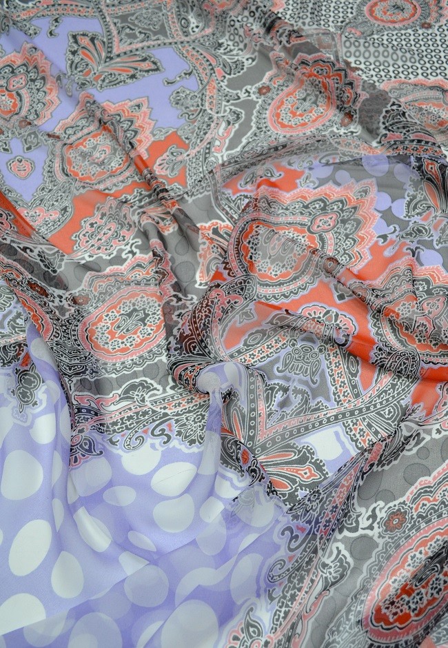 Шелковая ткань с другими типами материалов в шитье. Натуральные или искусственные ткани используют в своих работах известные модельеры задающие тренды модной индустрии. Если Вы хотите пошить молодежный наряд используйте Шелк Шифон принт цветы и геометрия предварительно выбрав расцветку, рисунок, состав ткани из представленных в нашем каталоге.