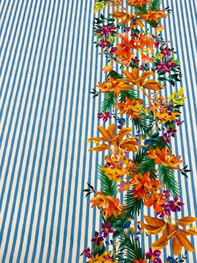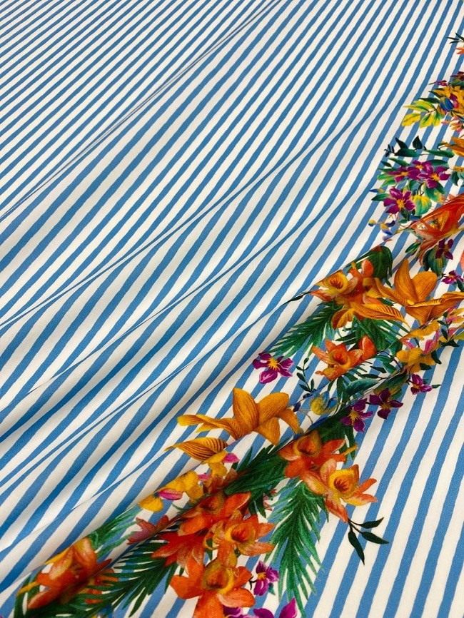 Матеріал Котон Принт Ж Рапорт Квіти використовується для пошиття одягу на кожен день для чоловіків та жінок. Сучасні напрямки моді дозволяють комбінувати тканину