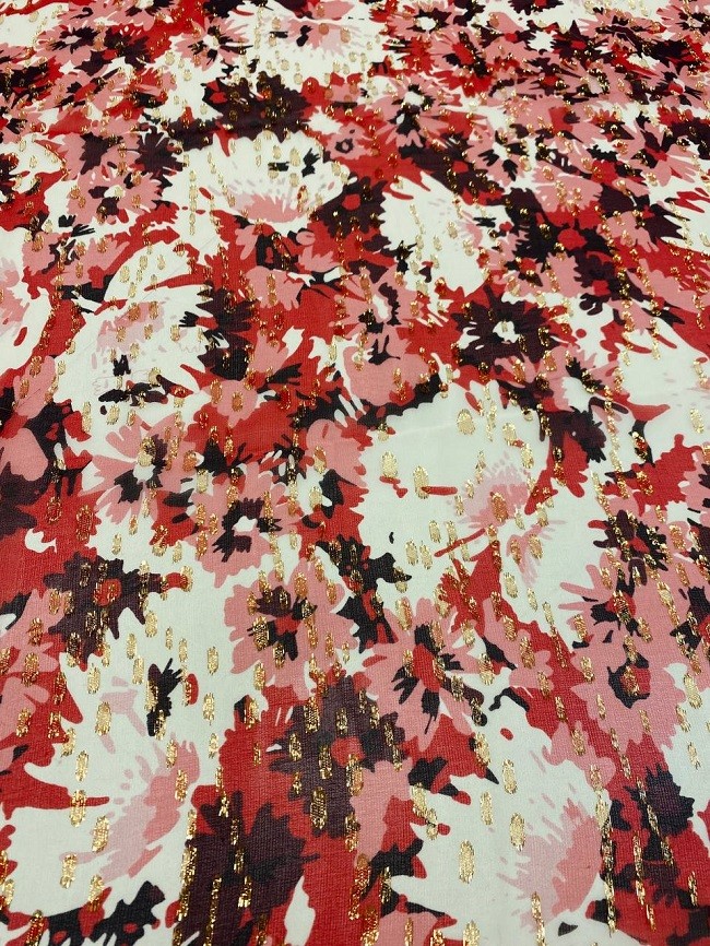 Шовк Шифон принт квіти (Червоний)